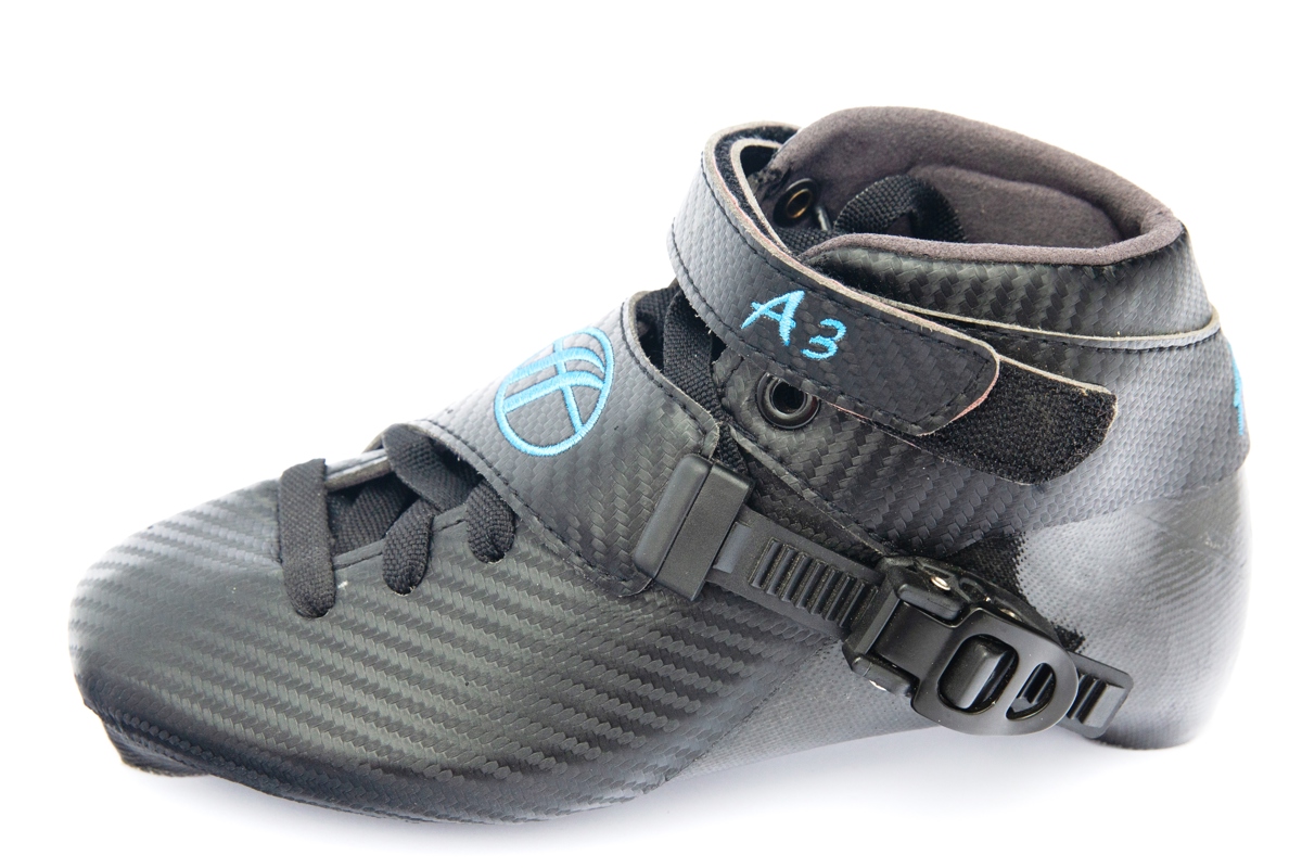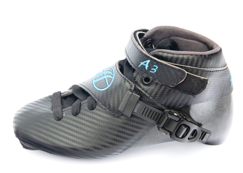 The A3 boot is designed especially for smaller sizes, for kids. This boot is designed to give maximum support and comfort for inline skating as well as for short track! Ideal boot for kids starting with competition inline skating and/or short track. The ankle edge is higher giving extra support with the extra closure strip. The height of the boot is designed in a way that the athlete despite the extra height experiences enough freedom of motion of the ankle. Extra padding offers extra comfort. Due to the fact no carbon is used the weight is slightly increased, in fact negligible for the smaller sizes. This has also the absolute advantage that the price is lower and unique for this quality level.